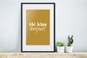La citation : Hé la classe merci ! sur fond jaune ocre.