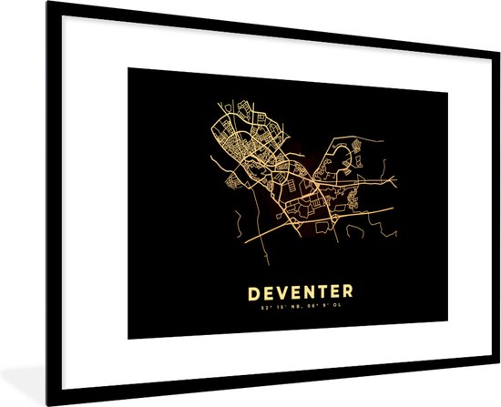 Cadre photo avec affiche - Deventer - Plan de la ville - Carte - Carte - Nederland - 90x60 cm - Cadre pour affiche