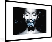 Cadre photo avec affiche - Femme - Papillon - Blauw - 60x80 cm - Cadre pour affiche