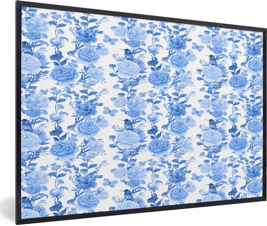 Cadre photo avec affiche - Fleurs - Roses - Blauw - 90x60 cm - Cadre pour affiche