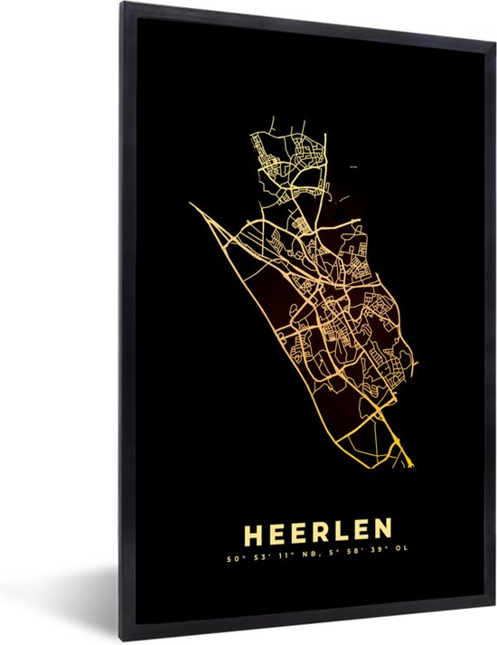 Cadre photo avec affiche - Heerlen - Plan de la ville - Carte - Carte - Pays- Nederland - 60x90 cm - Cadre pour affiche