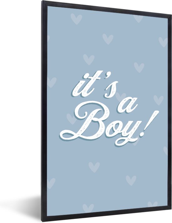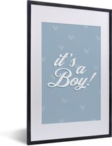 Cadre photo avec affiche - It's a Boy - Boy - Baby shower - Blauw - Coeur - Born - 40x60 cm - Cadre pour affiche