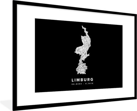 Cadre photo avec affiche - Limbourg - Carte - Pays- Nederland - 90x60 cm - Cadre pour affiche