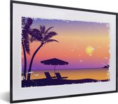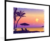 Cadre photo avec affiche - Plage - Chaise - Parasol - Nuit - 120x80 cm - Cadre pour affiche