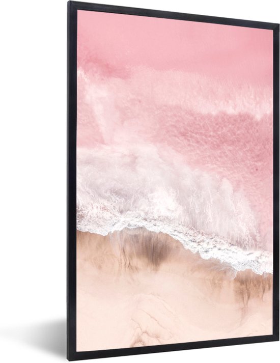 Cadre photo avec affiche - Plage - Mer - Rose - Nature - Vagues - 40x60 cm - Cadre pour affiche