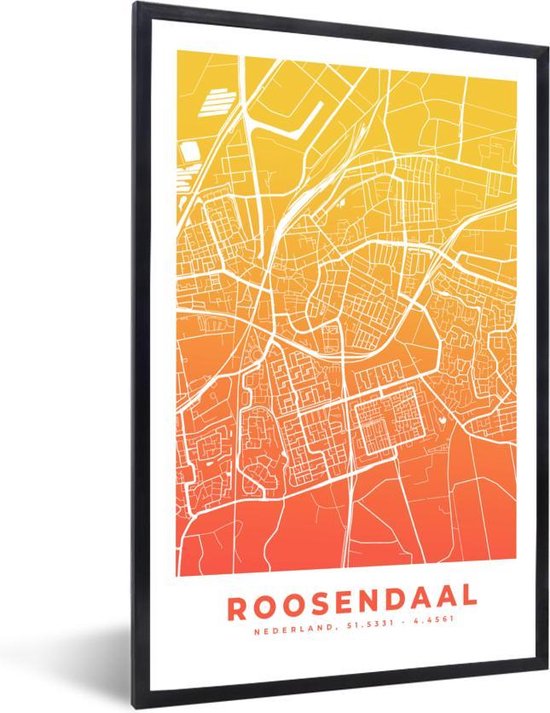 Cadre photo avec affiche - Plan de la ville - Roosendaal - Jaune - 80x120 cm - Cadre pour affiche