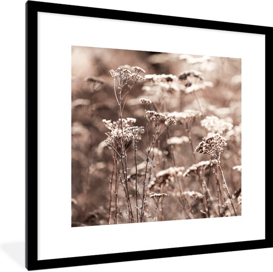 Cadre photo avec affiche - Plantes - Fleurs - Hiver - Neige - Sépia - 40x40 cm - Cadre pour affiche