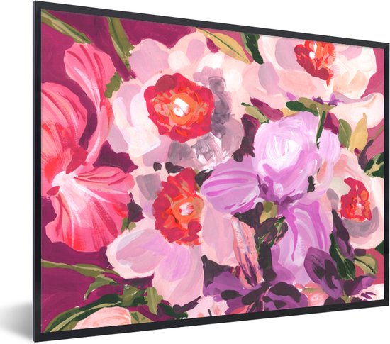 Cadre photo avec affiche - Rose - Orchidée - Fleurs - Couleurs - Botanique - 80x60 cm - Cadre pour affiche