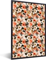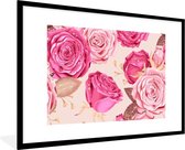 Cadre photo avec affiche - Roses - Fleurs - Gouttes - 120x80 cm - Cadre pour affiche