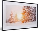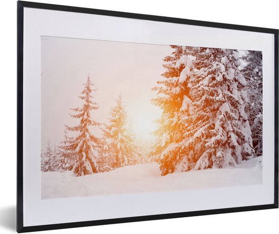 Cadre photo avec affiche - Soleil - Arbres - Neige - 60x40 cm - Cadre pour affiche - Décorations de Noël - Décoration de Noël pour l'intérieur - Noël