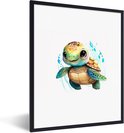 Cadre photo avec affiche - Tortue - Aquarelle - Couleurs - Animaux - Filles - Garçons - 30x40 cm - Cadre pour affiche