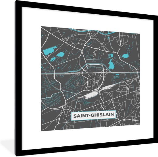 Cadre - Affiche - Carte - Plan - Plan de ville - Saint Ghislain - België - Grijs - Cadre photo
