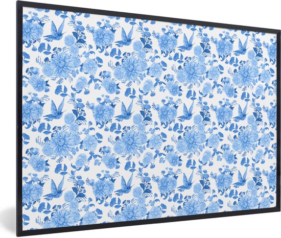 Cadre photo avec poster - Fleurs - Motif - Blauw - 90x60 cm - Cadre poster