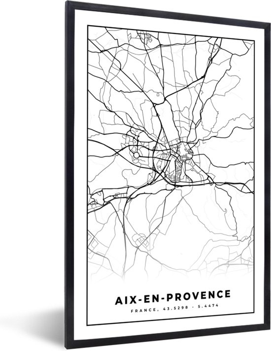 Cadre photo avec Poster Zwart Wit- Plan de la ville - Aix-en- Provence - France - Carte - Carte - Zwart et blanc - 20x30 cm - Cadre pour poster