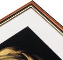 C'est un beau cadre avec passe partout. Mais il ne peut également être utilisé que comme cadre avec passe-partout : si vous souhaitez utiliser l'ensemble du cadre, c'est-à-dire sans passe-partout, les pinces de fermeture à l'arrière poussent à travers la photo grâce à leur fixation convexe. Vous verrez alors des taches rondes permanentes sur le devant de votre photo. Péché. L'anneau épais qui fixe les pinces de fermeture au karton est en cause.
