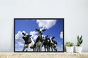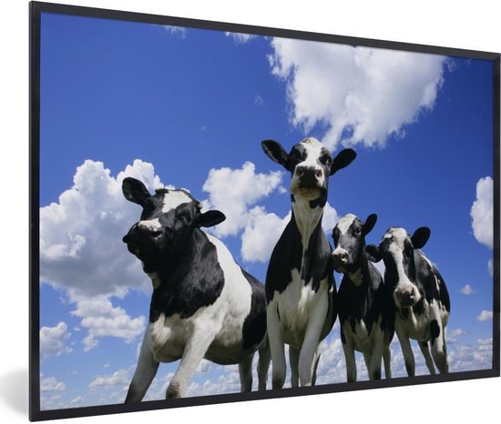 Cadre photo - Quatre vaches frisonnes sous un ciel nuageux Cadre photo noir 60x40 cm - Affiche sous cadre (Décoration murale salon / chambre)