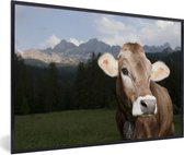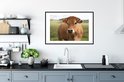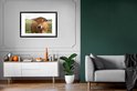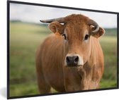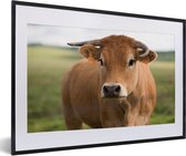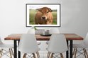 Cadre photo - Vache brune avec cornes cadre photo noir avec passe-partout blanc 60x90 90x60 cm - Affiche sous cadre (Décoration murale salon / chambre)