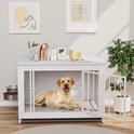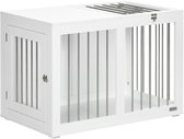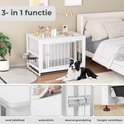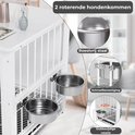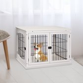 Cage pour chien - Moyens et petits Chiens jusqu'à 40 kg - Wit - Bois et acier - 100 x 67 x 64 cm - Avec 2 Mangeoires - Plateau coulissant - Style meuble