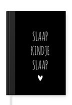 Citation hollandaise '' House boompje baby '' avec un coeur sur fond noir.