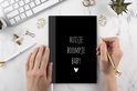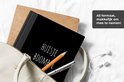 Le bloc -notes a une couverture rigide et est fini avec une reliure noire. Cette reliure a un aspect daim, ce qui lui donne un aspect luxueux. En raison de la reliure noire, le carnet a un dos partiellement noir. En raison de sa taille compacte, le carnet à couverture rigide est facile à transporter.