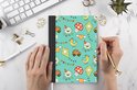 Le carnet A5 a des pages avec des lignes pré-imprimées et une barre pour régler la date. Ainsi, vous pouvez écrire vos notes proprement et de manière ordonnée. De plus, le bloc-notes contient un signet, afin que vous sachiez exactement sur quelle page vous êtes resté. Le cahier contient 98 pages. Cela vous permet d'avancer un moment avant que le livret ne soit plein !
