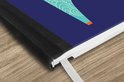 Le bloc -notes a une couverture rigide et est fini avec une reliure noire. Cette reliure a un aspect daim, ce qui lui donne un aspect luxueux. En raison de la reliure noire, le carnet a un dos partiellement noir. En raison de sa taille compacte, le carnet à couverture rigide est facile à transporter.
