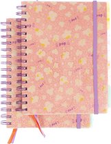 - Le carnet a 2 rubans de lecture colorés et un élastique de fermeture.