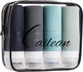 Cailean - Bouteilles de voyage avec étui - 4 Pièces - 100 ml - Barre de recharge - Bagage à main - Silecone - Accessoires de voyage - Ensemble de voyage - Durable - Bouteilles de voyage