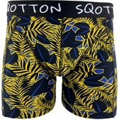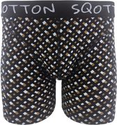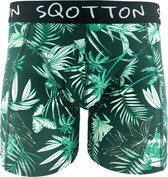 Boxer confortable pour homme avec imprimé jungle all-over de couleur noir et blanc. Ce modèle de boxer a une coupe ajustée et un confort de port élevé. Cela garantit que le modèle de boxer bodyfit reste en place. La matière de ce boxer est composée de 95% coton et 5% élasthanne. Le Katoen est un matériau respirant, absorbant l'humidité et merveilleusement doux, idéal pendant les journées chaudes, grâce au tissu en coton, le boxer ne se sent pas trop chaud. Le boxer pour homme est fini avec une large bande élastique avec le nom de la marque SQOTTON dessus. Le boxer n'a pas d'étiquette de lavage irritante, mais est muni d'un sceau de lavage imprimé. Les boxers pour hommes sont disponibles à l'unité dans les tailles M à XXL.