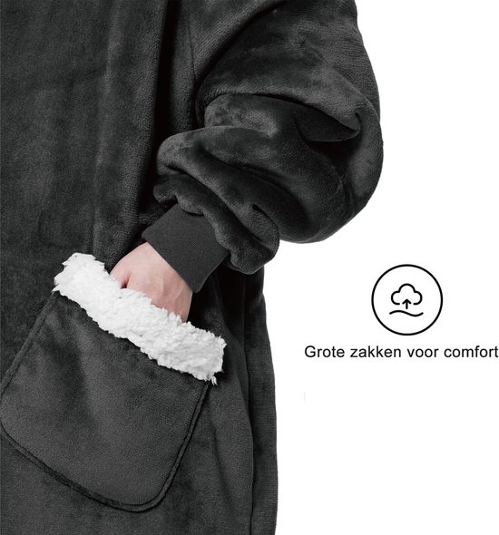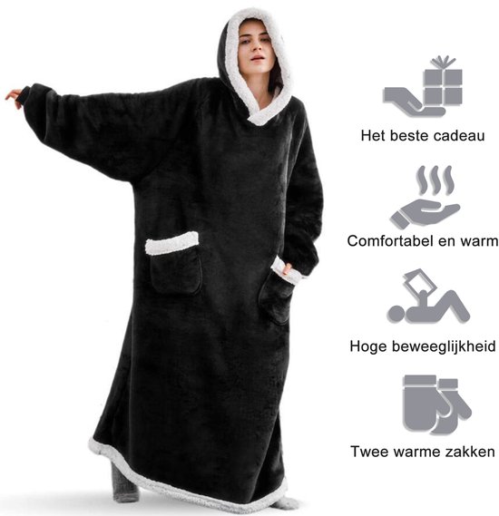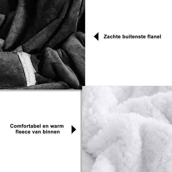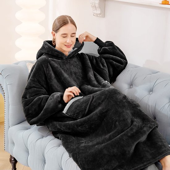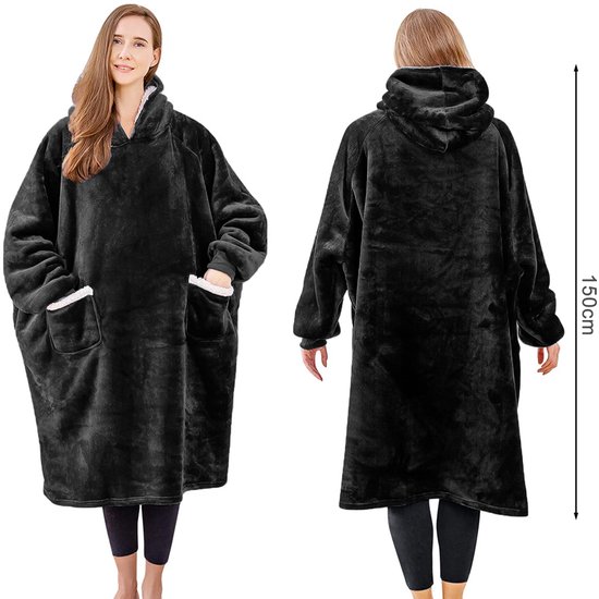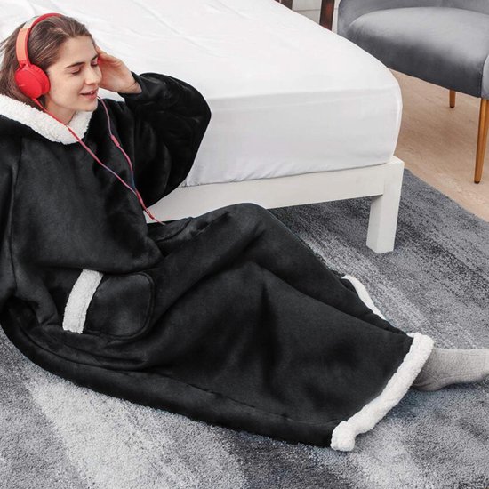 CALIYO Couverture à capuche - Couverture polaire - Blanket avec manches et capuche - Femme et homme - Polaire Sherpa - Couverture TV - Couverture canapé - 150 cm - Zwart