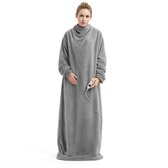 Une couverture vestimentaire absolument ravissante. Il est bien chaud et doux grâce à la polaire à l'intérieur et à la flanelle à l'extérieur. Je mesure 1,83 m et ça arrive à mes chevilles. Il est également beau et grand en largeur. J'ai une carrure assez grande, mais elle me va aussi très confortablement et ne pince nulle part. Les poches sont belles et grandes et la capuche s'ajuste également bien. En prime, mes chats adorent la couverture. Parce que la robe couverture est ample, il y a largement assez de place sur mes genoux pour tous nos chats (trois) et ils en font bon usage. Dès que je m'assois, ils ne savent pas à quelle vitesse s'allonger dessus ! Un atout absolu pour les mois humides et froids à venir.