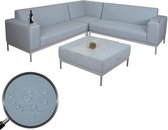 Canapé MCW-H70, canapé de salle à manger canapé rembourré, dossier tissu/textile chenille acier inoxydable brossé 180cm ~ bleu-vert