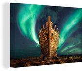 Aurores boréales sur le bateau viking 120x80 cm - Tirage photo sur toile (Décoration murale salon / chambre)