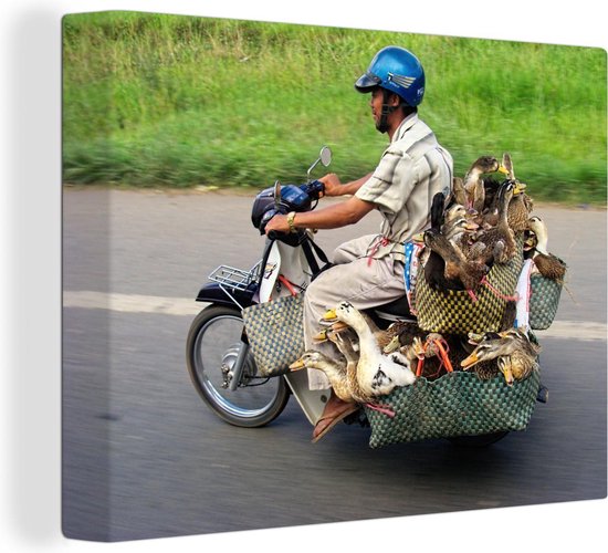 Canards en moto 160x120 cm - Tirage photo sur toile (Décoration murale salon / chambre) / Animaux domestiques Peintures sur toile XXL / Groot format!