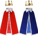 Cape/manteau Joya Kids King avec Kroon et bâton pour adultes | Costumes de carnaval | Cape d'habillage du Prins | Le Moyen-Âge | Majesté | Bleu | Unisexe | Taille unique