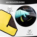 - Chiffon en microfibre : Le chiffon en microfibre jaune enlève la saleté et évacue en même temps l'eau. Avec le chiffon en microfibre, vous essuyez votre voiture de haut en bas.