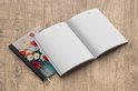 Le bloc -notes a une couverture rigide et est fini avec une reliure noire. Cette reliure a un aspect daim, ce qui lui donne un aspect luxueux. En raison de la reliure noire, le carnet a un dos partiellement noir. En raison de sa taille compacte, le carnet à couverture rigide est facile à transporter.