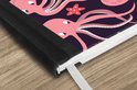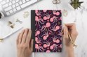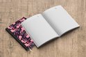 Le bloc -notes a une couverture rigide et est fini avec une reliure noire. Cette reliure a un aspect daim, ce qui lui donne un aspect luxueux. En raison de la reliure noire, le carnet a un dos partiellement noir. En raison de sa taille compacte, le carnet à couverture rigide est facile à transporter.
