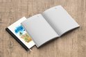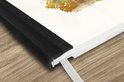 Le bloc -notes a une couverture rigide et est fini avec une reliure noire. Cette reliure a un aspect daim, ce qui lui donne un aspect luxueux. En raison de la reliure noire, le carnet a un dos partiellement noir. En raison de sa taille compacte, le carnet à couverture rigide est facile à transporter.