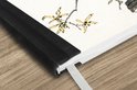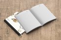 Le bloc -notes a une couverture rigide et est fini avec une reliure noire. Cette reliure a un aspect daim, ce qui lui donne un aspect luxueux. En raison de la reliure noire, le carnet a un dos partiellement noir. En raison de sa taille compacte, le carnet à couverture rigide est facile à transporter.