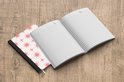 Le bloc -notes a une couverture rigide et est fini avec une reliure noire. Cette reliure a un aspect daim, ce qui lui donne un aspect luxueux. En raison de la reliure noire, le carnet a un dos partiellement noir. En raison de sa taille compacte, le carnet à couverture rigide est facile à transporter.