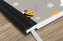 Motif d'étoiles, d'abeilles, d'arcs-en-ciel et de nuages sur fond lilas.
