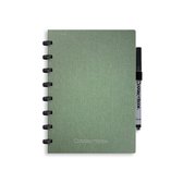 Le bloc -notes a une couverture rigide et est fini avec une reliure noire. Cette reliure a un aspect daim, ce qui lui donne un aspect luxueux. En raison de la reliure noire, le carnet a un dos partiellement noir. En raison de sa taille compacte, le carnet à couverture rigide est facile à transporter.