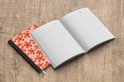 Le bloc -notes a une couverture rigide et est fini avec une reliure noire. Cette reliure a un aspect daim, ce qui lui donne un aspect luxueux. En raison de la reliure noire, le carnet a un dos partiellement noir. En raison de sa taille compacte, le carnet à couverture rigide est facile à transporter.