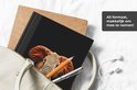 Le bloc -notes a une couverture rigide et est fini avec une reliure noire. Cette reliure a un aspect daim, ce qui lui donne un aspect luxueux. En raison de la reliure noire, le carnet a un dos partiellement noir. En raison de sa taille compacte, le carnet à couverture rigide est facile à transporter.