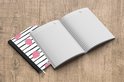 Le bloc -notes a une couverture rigide et est fini avec une reliure noire. Cette reliure a un aspect daim, ce qui lui donne un aspect luxueux. En raison de la reliure noire, le carnet a un dos partiellement noir. En raison de sa taille compacte, le carnet à couverture rigide est facile à transporter.
