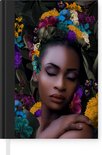 Carnet - Carnet d'écriture - Feuilles - Femme - Fleurs - Carnet - Format A5 - Bloc-notes