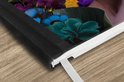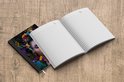 Le bloc -notes a une couverture rigide et est fini avec une reliure noire. Cette reliure a un aspect daim, ce qui lui donne un aspect luxueux. En raison de la reliure noire, le carnet a un dos partiellement noir. En raison de sa taille compacte, le carnet à couverture rigide est facile à transporter.