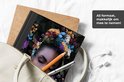 Le bloc -notes a une couverture rigide et est fini avec une reliure noire. Cette reliure a un aspect daim, ce qui lui donne un aspect luxueux. En raison de la reliure noire, le carnet a un dos partiellement noir. En raison de sa taille compacte, le carnet à couverture rigide est facile à transporter.
