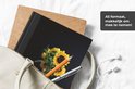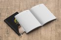 Le bloc -notes a une couverture rigide et est fini avec une reliure noire. Cette reliure a un aspect daim, ce qui lui donne un aspect luxueux. En raison de la reliure noire, le carnet a un dos partiellement noir. En raison de sa taille compacte, le carnet à couverture rigide est facile à transporter.
